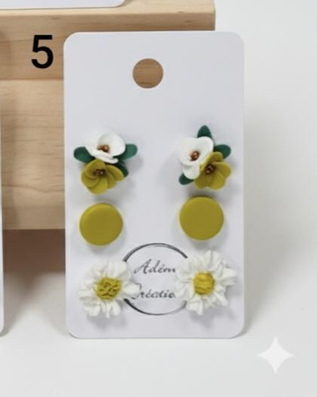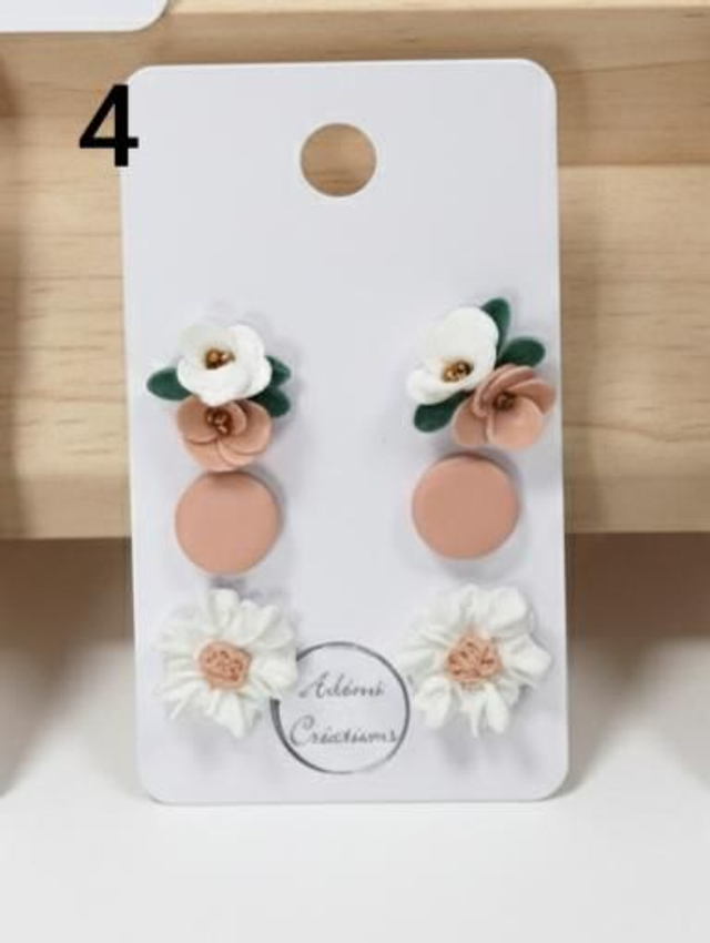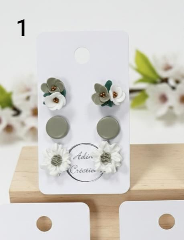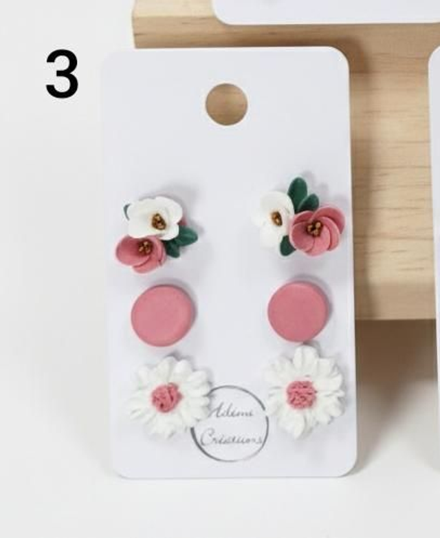 Boucles d'oreilles en argile polymèrebet acier inoxydable. Chaque modèle a été réalisé à la main.